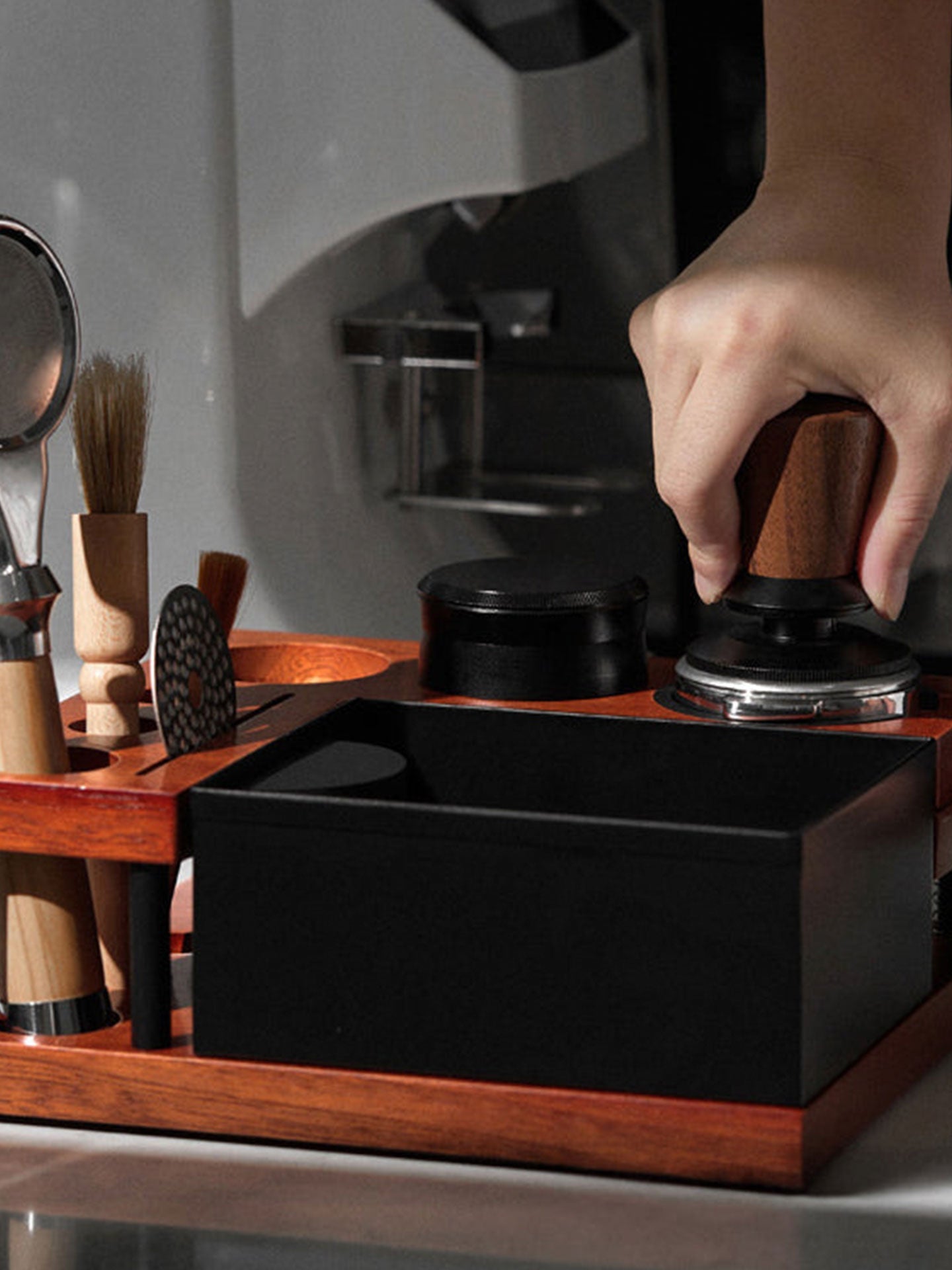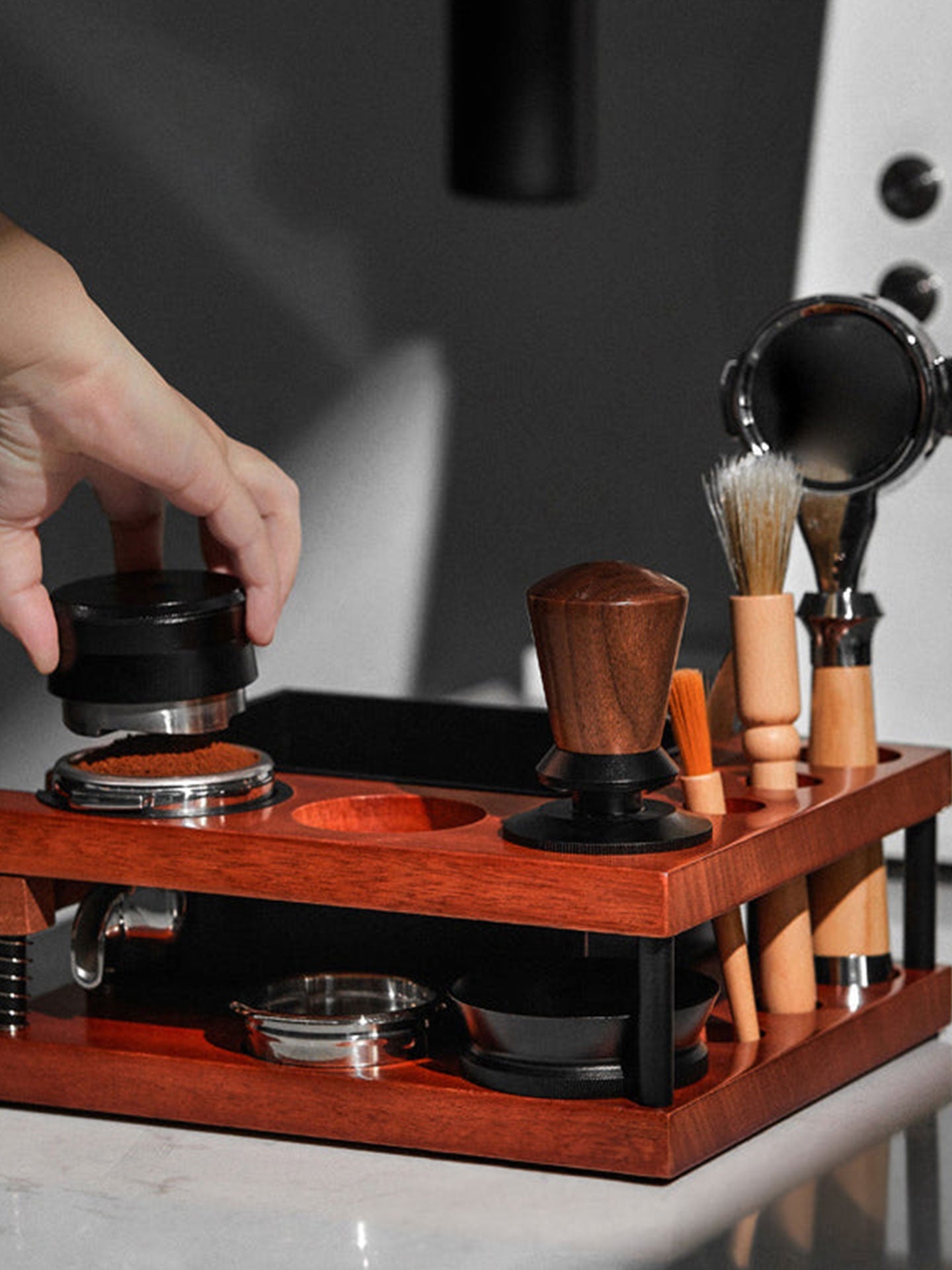 Regular price $119.99Streamline your espresso-making process with this espresso station, designed for efficiency and convenience. This station allows you to tamp, press, and knock off coffee grounds all in one organized setup. The integrated string mechanism provides enhanced stability during pressing, ensuring a smoother and more consistent tamping experience