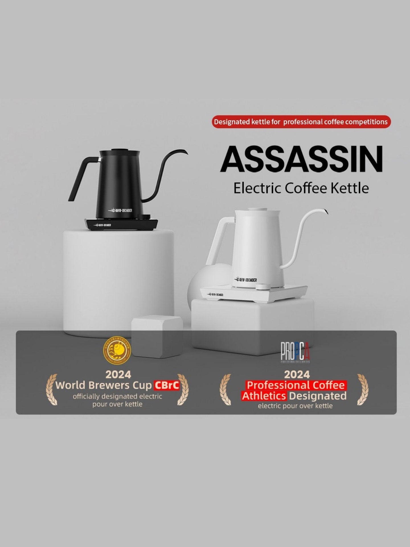 Regular price $110.00This Assassin Gooseneck Kettle features precise temperature control (40°C to 100°C), safety with dry-boil protection and auto-off, and BPA-free 304 stainless steel. It has a gooseneck spout, LED temperature display, and a compact 600ml capacity ideal for travel and camping.
