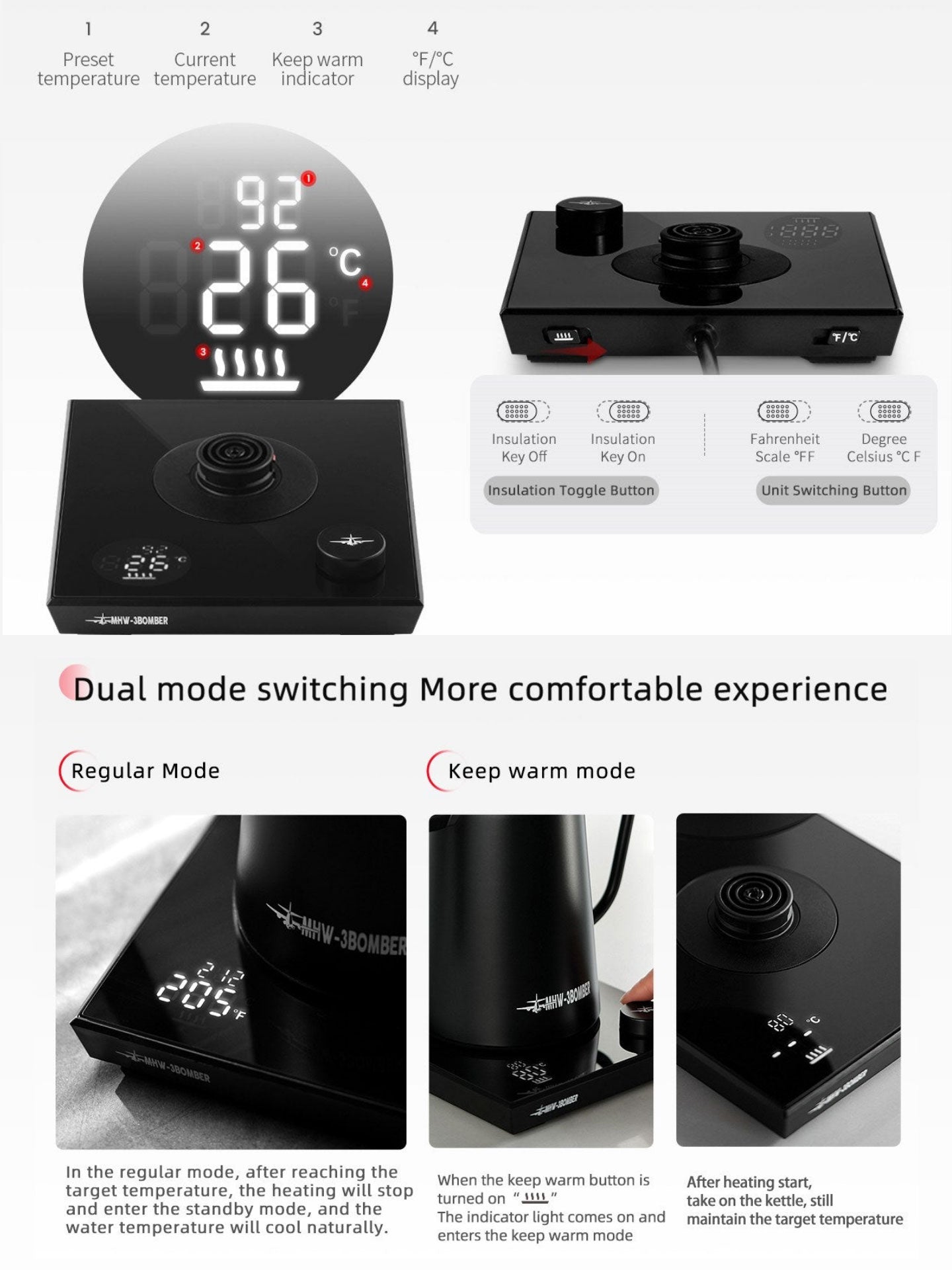 - PRECISE TEMPERATURE CONTROL: Built-in British strix thermostat of this electric gooseneck kettle can precisely control the water temperature(±1°C/1°F), and that allows you to select the ideal temperature from 40°C to 100°C. Precise water temperature allows you to better savor different teas and coffee beans.
