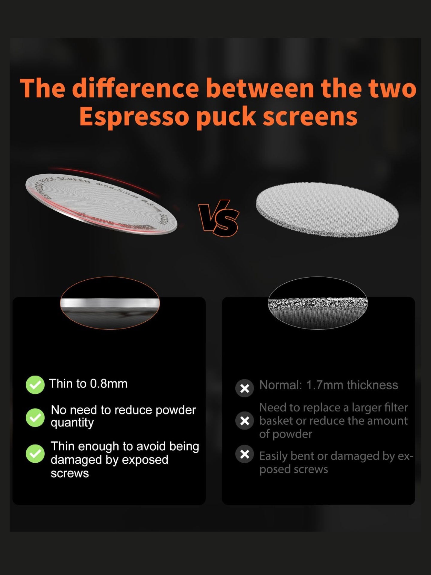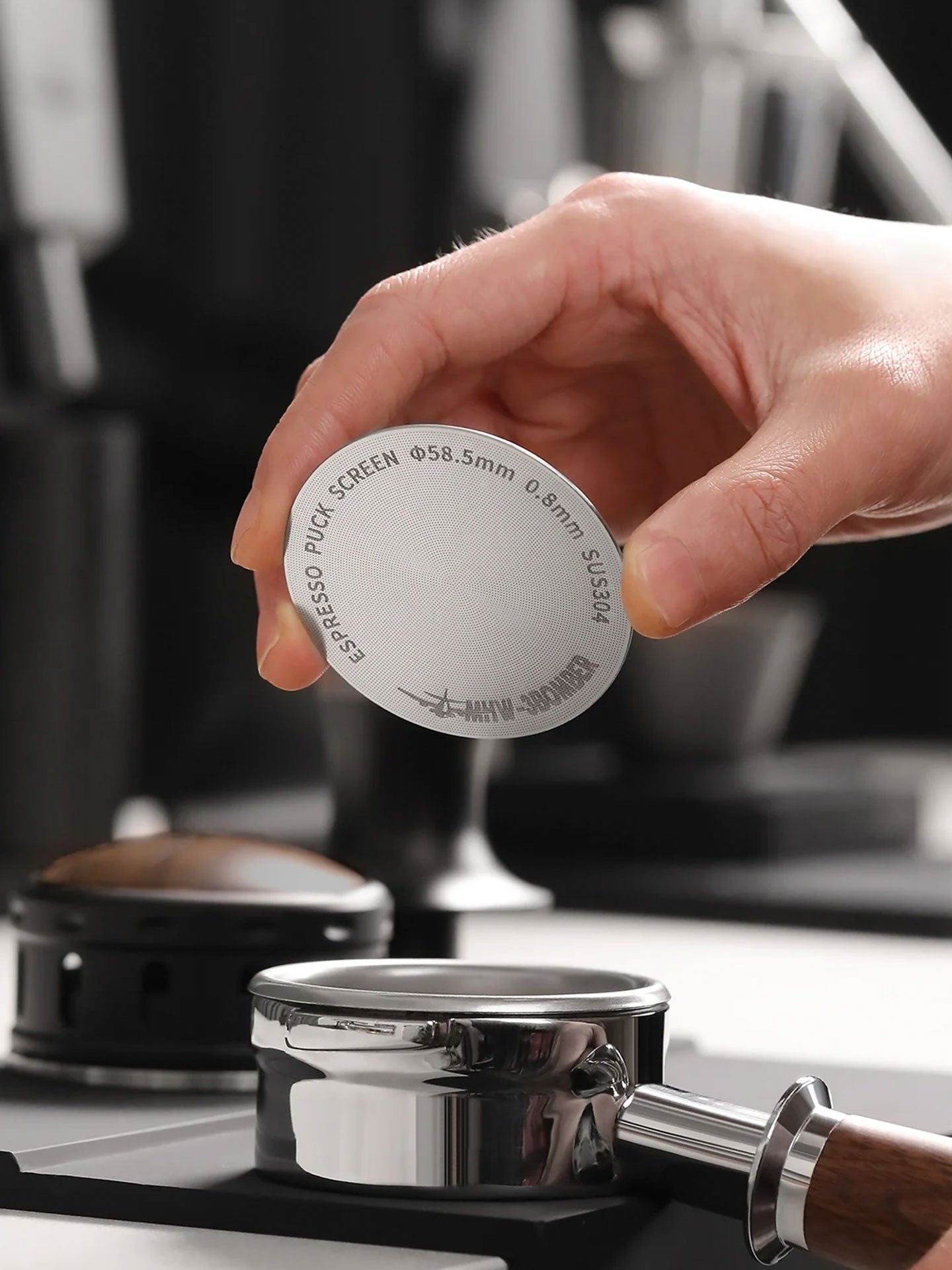 Regular price $12.00This puck screen is essential for coffee enthusiasts seeking to enhance their brewing experience. Made from durable 304 stainless steel, its double-layer metal design ensures even water distribution for a balanced extraction and richer espresso.