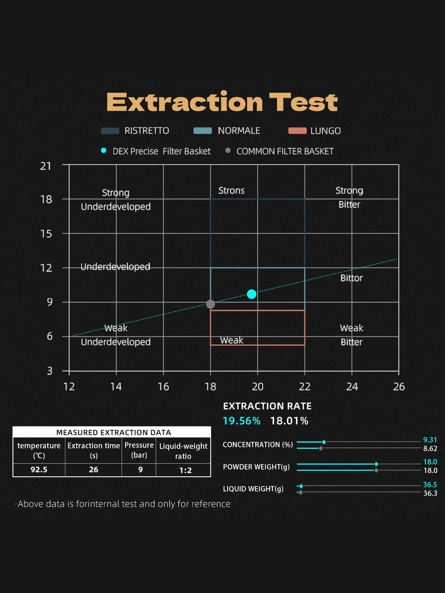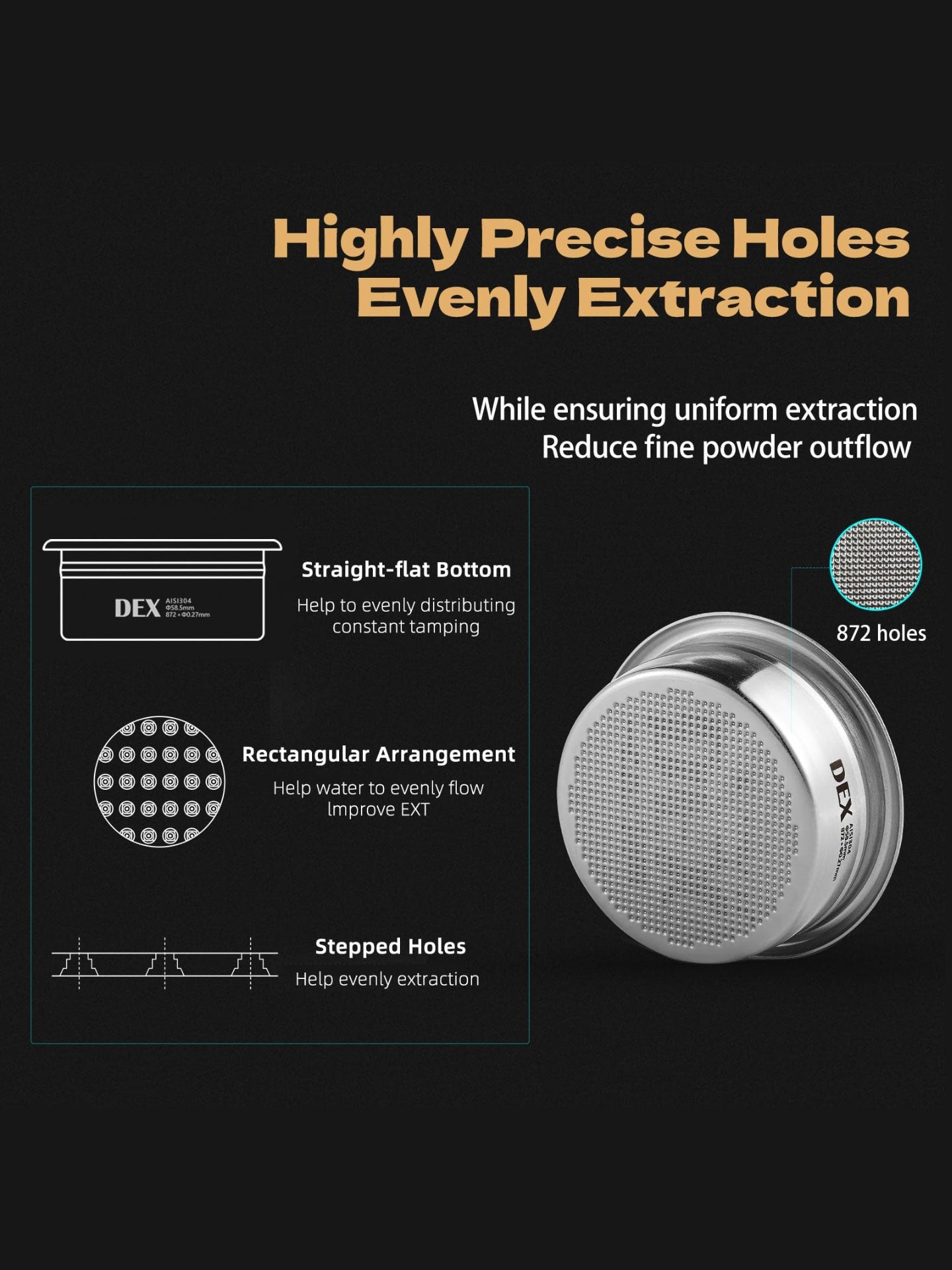 Regular price $29.99The filter basket's impact on espresso extraction is determined by the number and size of the holes at the bottom, known as the Total Open Area (TOA). The DEX precision filter basket features 872 high-precision holes, which enhance the extraction rate and produce more crema.