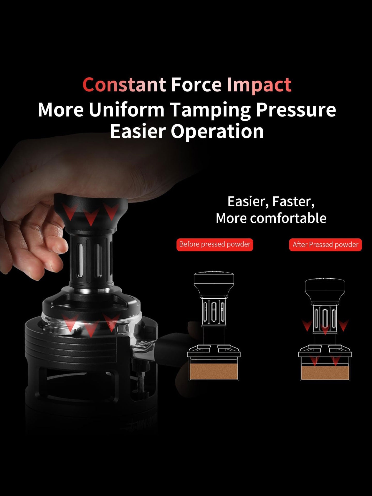 This Impact Espresso Tamper eliminates the guesswork from your espresso-making process. With its impact tamping mechanism, just press and you're ready to go, ensuring perfect, consistent pressure every time.
