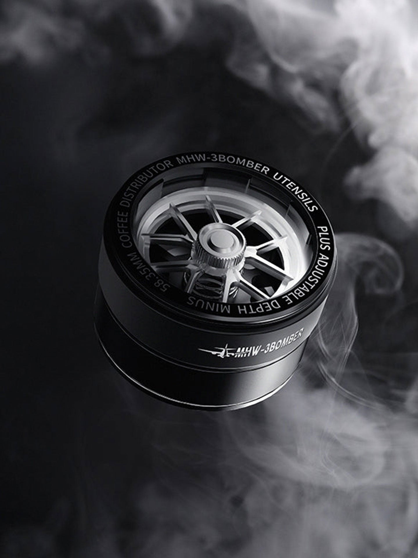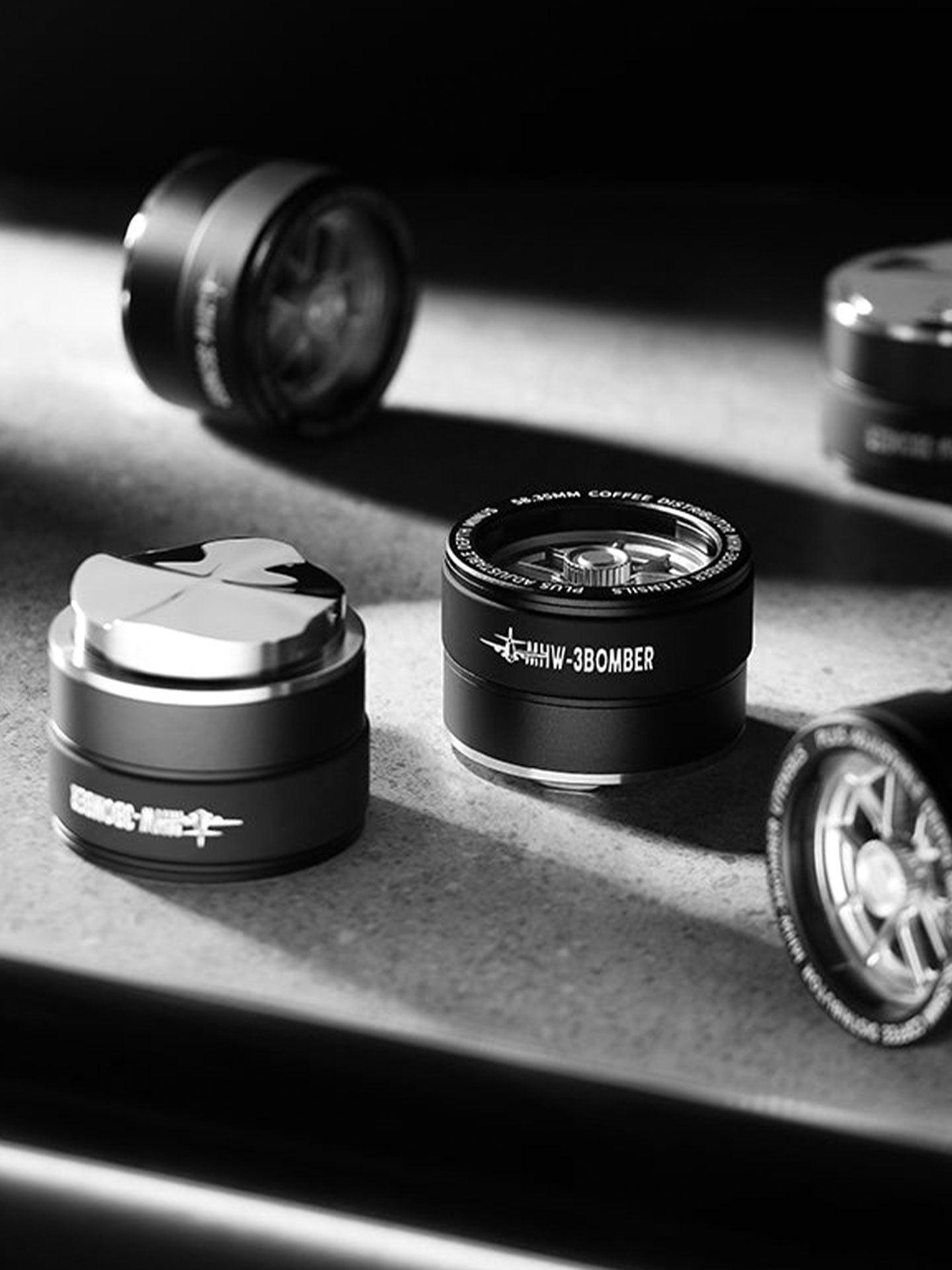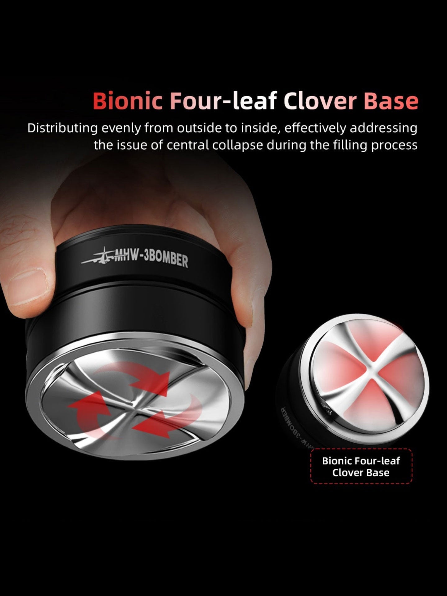 - Unique Design: The Coffee Distributor boasts an innovative top design inspired by a racing wheel hub, the visible tempered glass providing users with a captivating sense of mechanical aesthetics. Its base features a biomimetic four-leaf clover shape, allowing for even distribution of coffee grounds from the outer edges to the center, effectively addressing the issue of central collapse during the filling process.