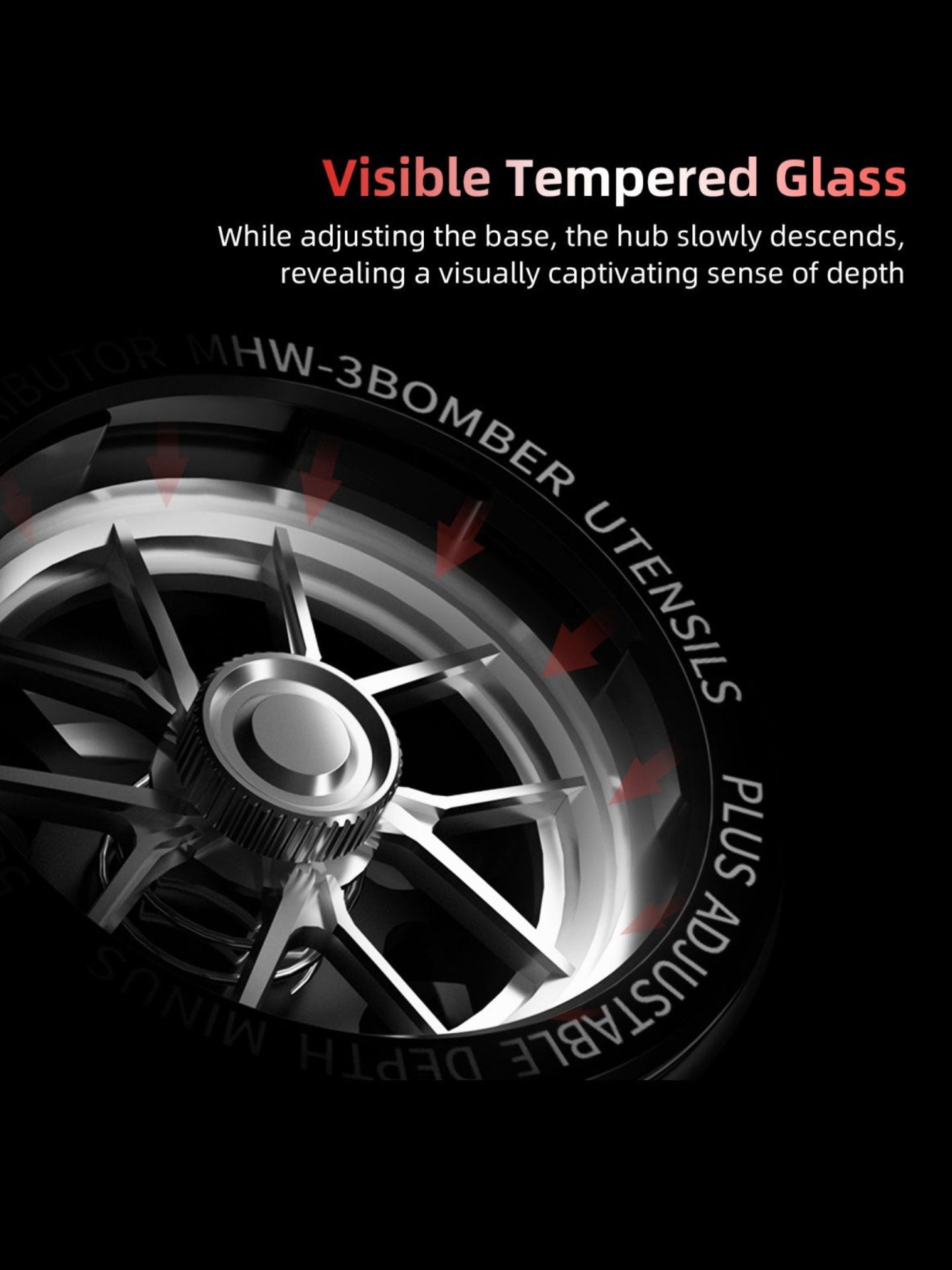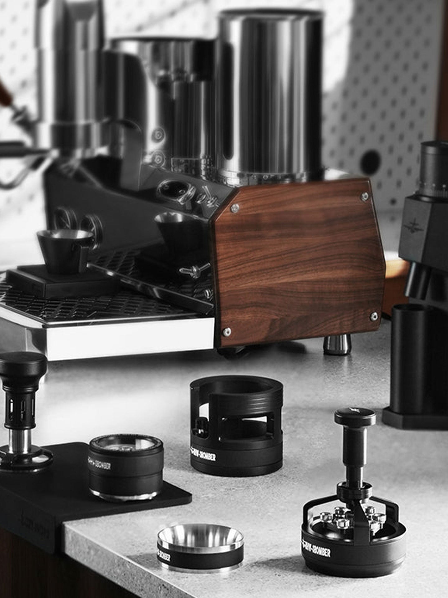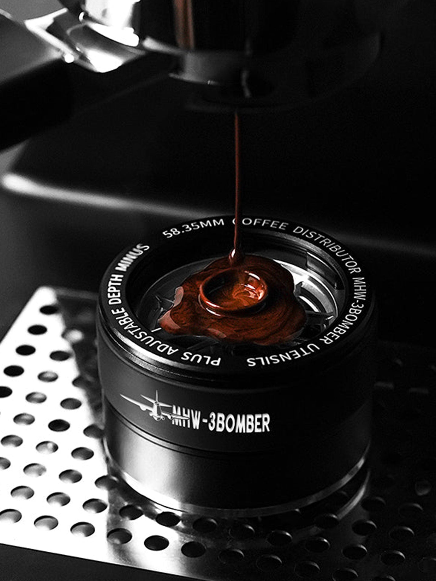 - Unique Design: The Coffee Distributor boasts an innovative top design inspired by a racing wheel hub, the visible tempered glass providing users with a captivating sense of mechanical aesthetics. Its base features a biomimetic four-leaf clover shape, allowing for even distribution of coffee grounds from the outer edges to the center, effectively addressing the issue of central collapse during the filling process.