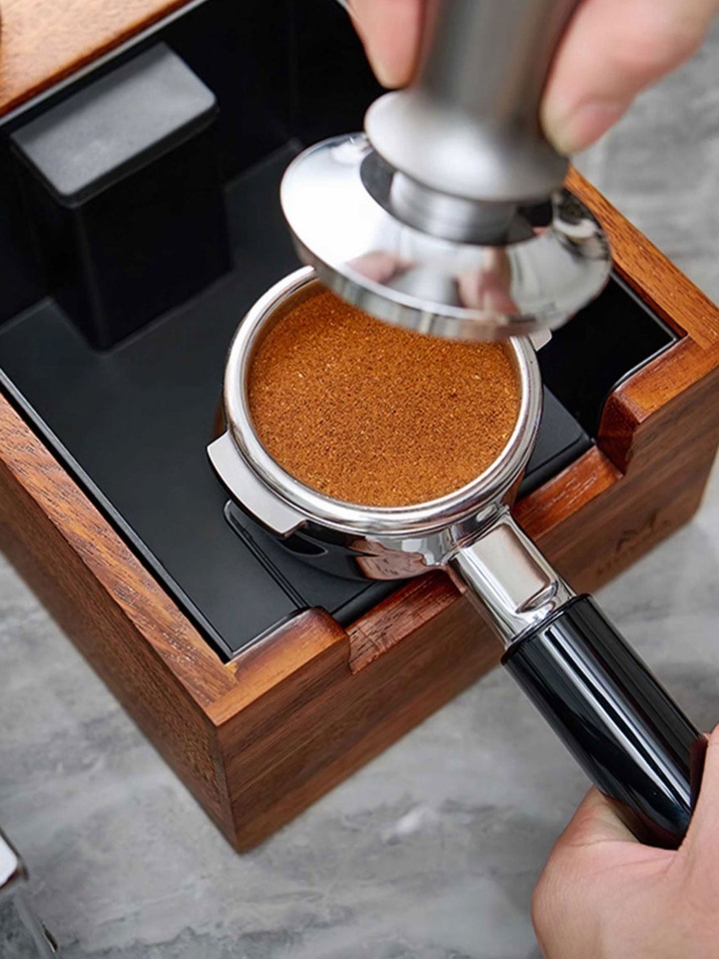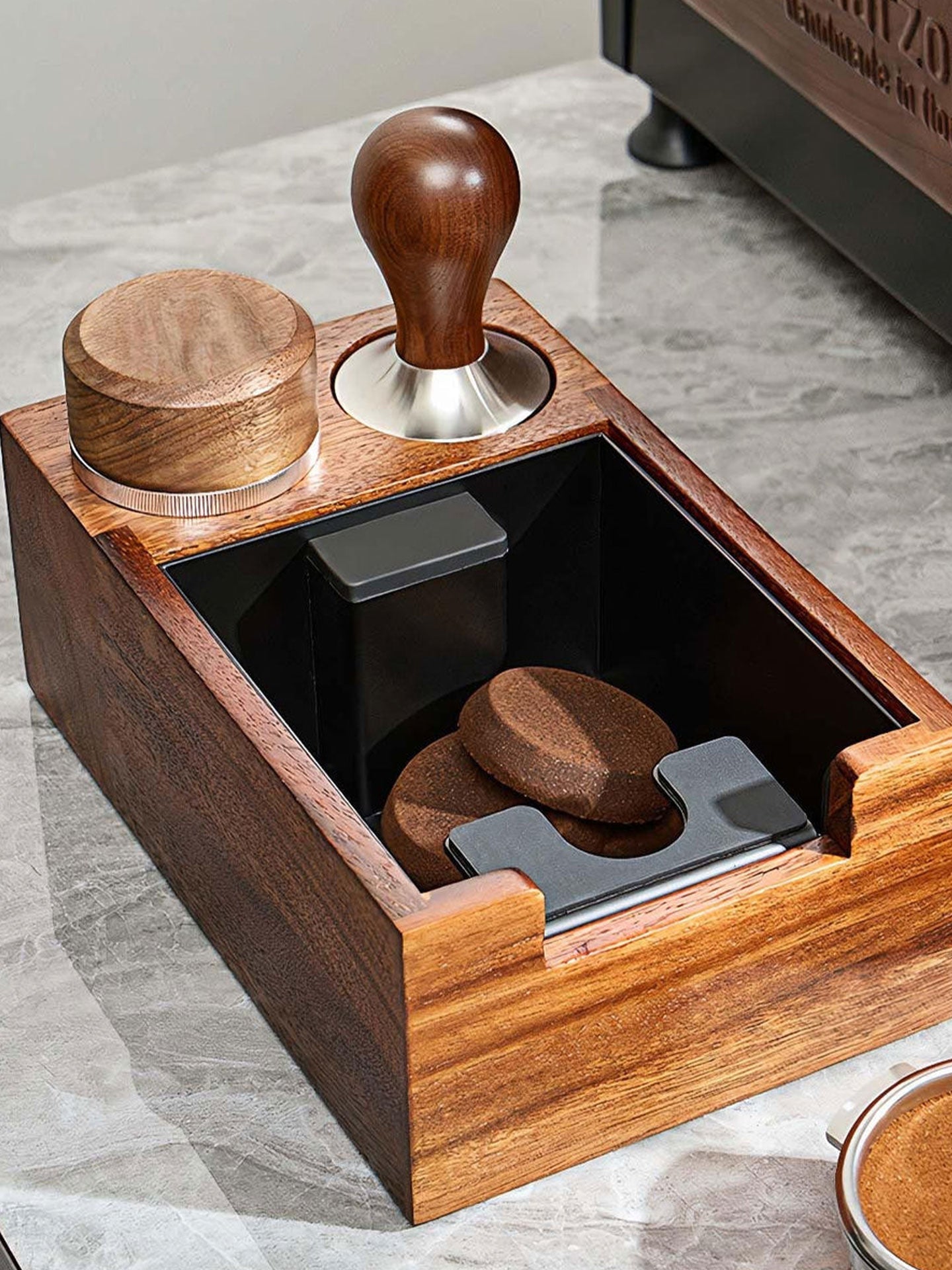 Regular price $89.99Streamline your espresso workflow with this tamping station. Designed for both functionality and style, it provides a stable base for tamping while keeping your workspace tidy with a built-in knock box.