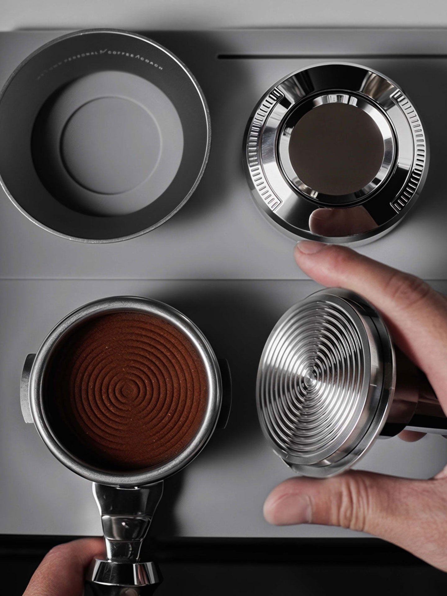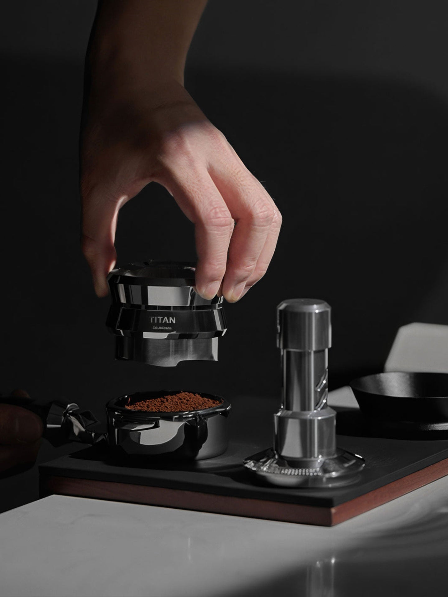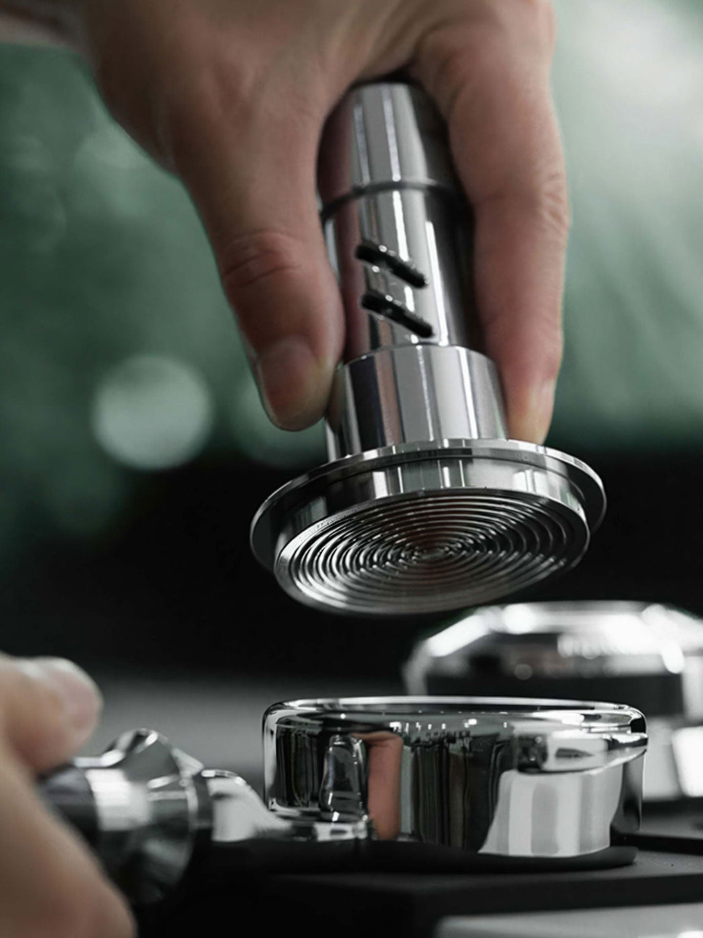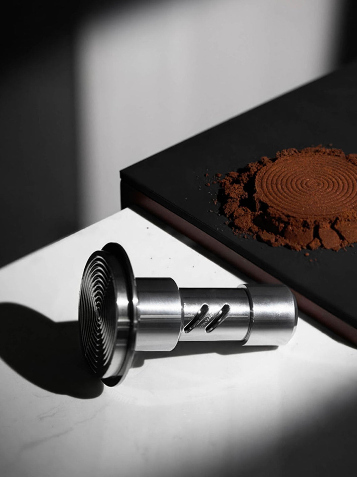 Effortlessly distribute your coffee grounds with this gravity distributor, designed to simplify your espresso preparation. Utilizing gravity and innovative design, this tool ensures even distribution without the need for manual adjustments.